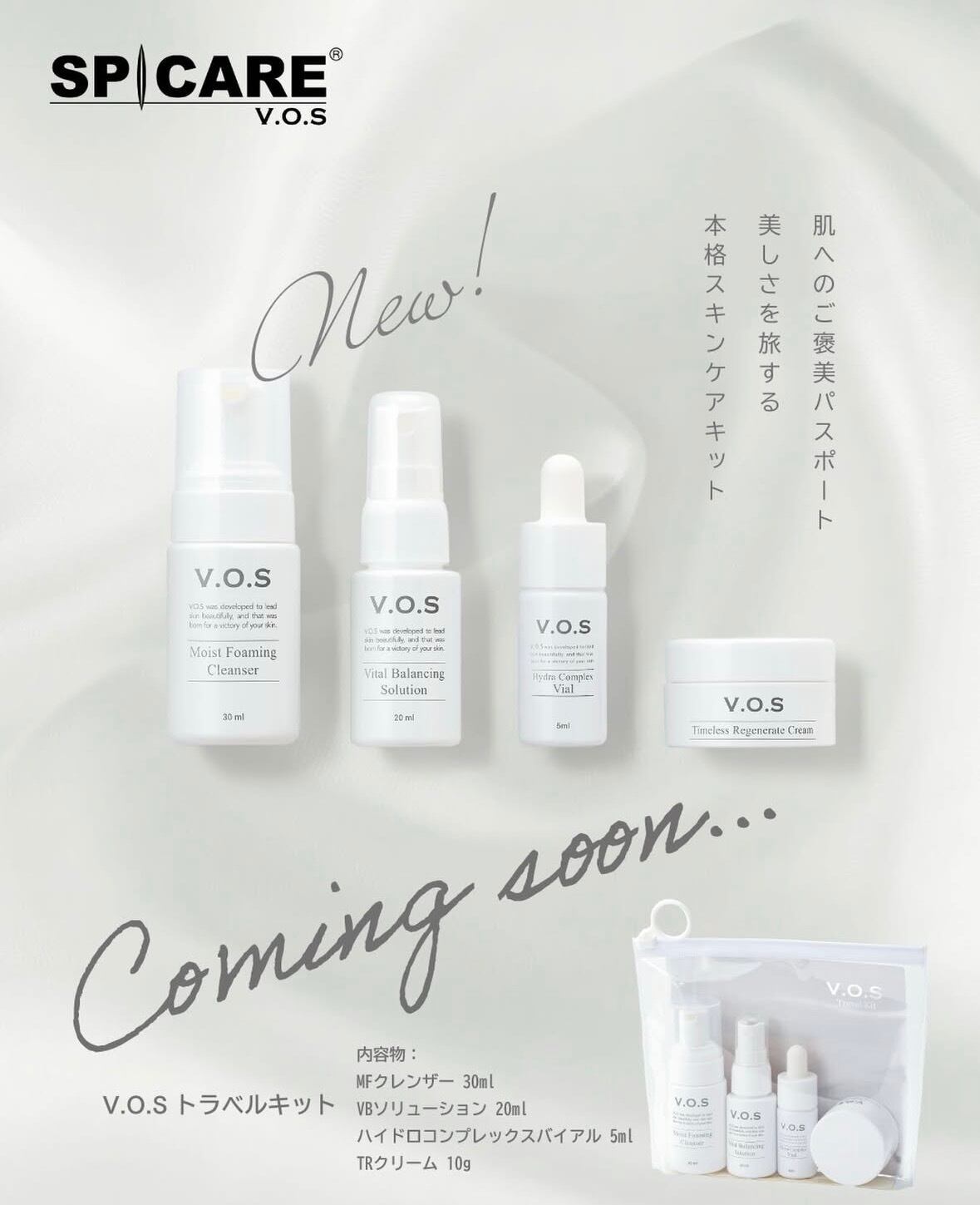 「美しさを旅する本格スキンケアキット」として、ご旅行や外出時の携帯用にはもちろん、初めてV.O.Sを体験されるお客様へのお試しに